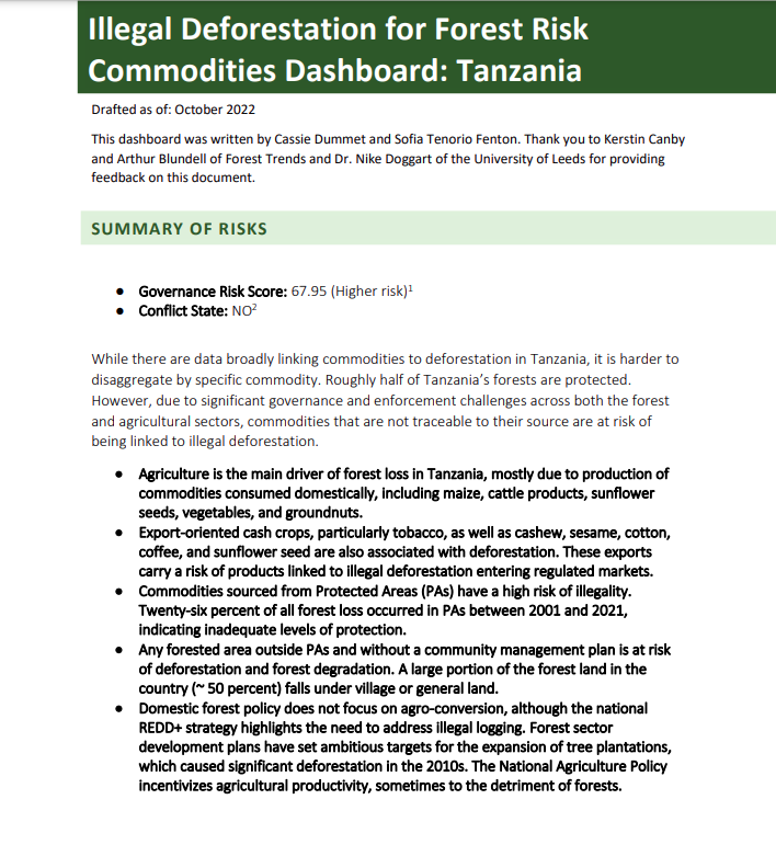 The Illegal Deforestation for Forest Risk Commodities (FRC) Country Dashboards have been drafted by Forest Trends through a grant funded by the United States Department of State, Bureau of Oceans and International Environmental and Scientific Affairs. The opinions, findings, and conclusions stated herein are those of the authors and do not necessarily reflect those of the United States Department of State or any other party. The United States supports efforts to raise awareness of and combat global illegal deforestation and associated trade. These dashboards contribute to these ongoing efforts.