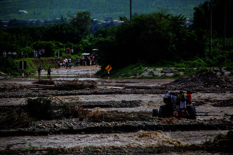 | Flooding in 2016 the Río Seco gully, district of Oyotún, Peru, destroyed a main road and left the district with no entrance or exit. Credit: Julio Reaño |