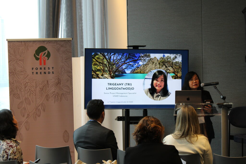 Tri Linggoatmodjo, Senior Project Management Specialist at USAID Indonesia giving her opening remarks on March 23rd at the Nature Hub, New York City