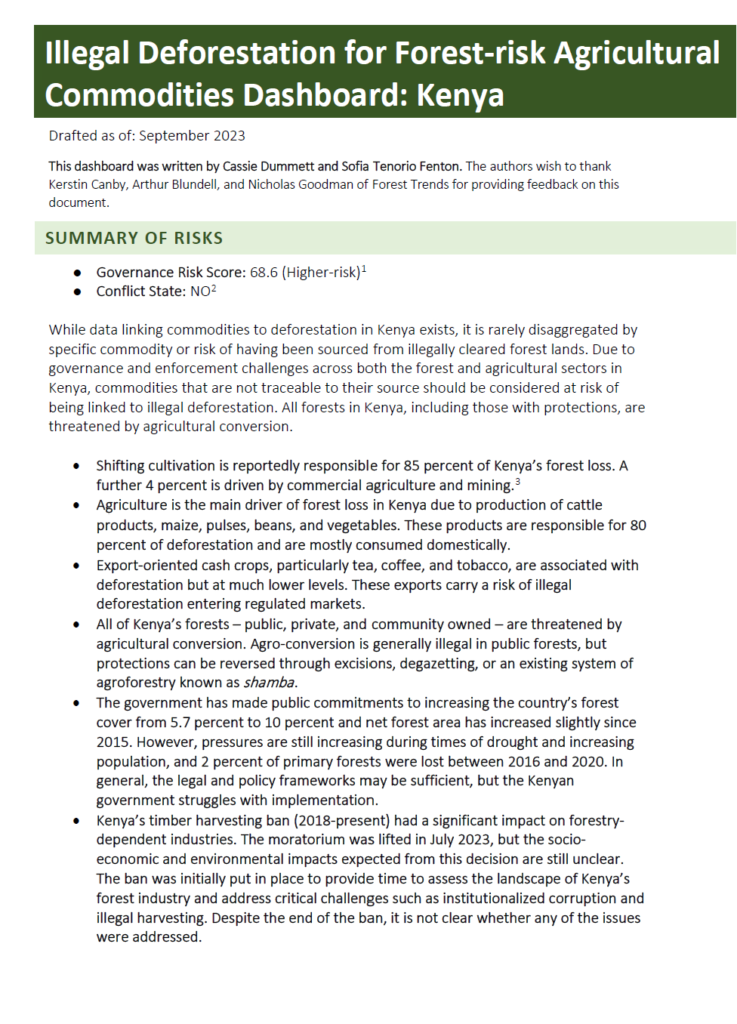 The information contained in the Dashboards is accurate, to the best of Forest Trends’ knowledge, as of the publication date. Stakeholders wishing to submit additional information for consideration in future updates can email the Review Committee at infoILATrisk@nullforest-trends.org.