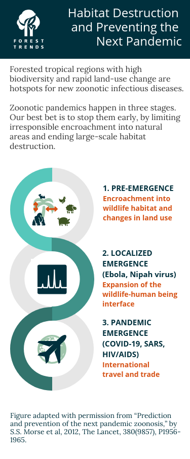 Those are the places where Forest Trends’ work is concentrated, as well. As these weeks have shown us, deforestation and the wildlife trade aren’t just a climate or biodiversity risk: they’re also major public health issues, and they’re getting worse.