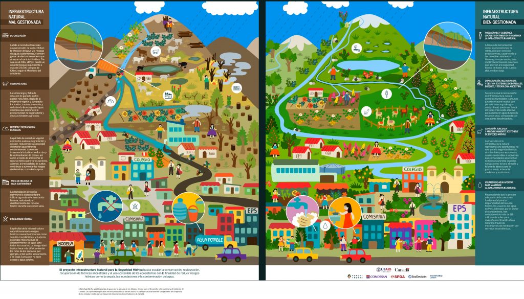 While governments have traditionally turned primarily to “gray infrastructure” such as reservoirs, desalination plants, and floodwalls to manage water challenges, it is increasingly recognized that “natural infrastructure,” the natural systems that provide key hydrological services such as regulating water flows and preventing erosion, is an indispensable complement to address today’s water crises. In Peru, natural infrastructure interventions that are critical to water security range from wetland and forest conservation, to improving grazing and farming practices, to even restoring pre-Incan infiltration canals.