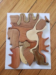 the pandemic. It was challenging because we have to use WhatsApp for all communication, which is not necessarily easy. One of our prototypes is children’s cutlery made out of wood with an animal from the Chaco at the top. If a set of spoon and fork with a “Loro” (parrot), then parents can use a link to download child-friendly information about the species. There is also an artist statement with a picture. We co-designed all of this with VinculArte.